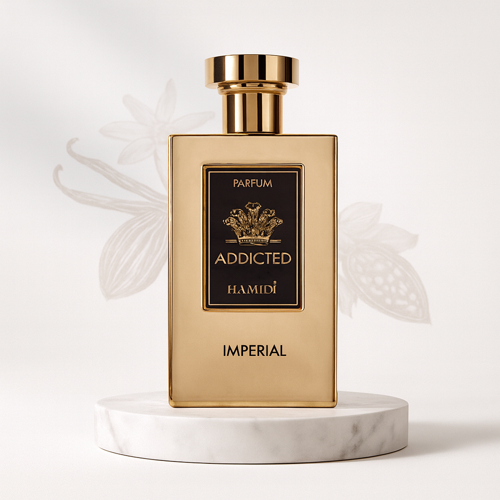 הבושם Addicted Imperial של חברת Hamidi הוא ניחוח מושק פרחוני ועצי לנשים וגברים. התווים העליונים הם פירות אדומים ו- תפוז ברגמוט; תווי האמצע הם עץ אלגום, עץ לבן ו- סיגלית; תווי הבסיס הם אמברוקסאן, וטיבר ו- מושק.